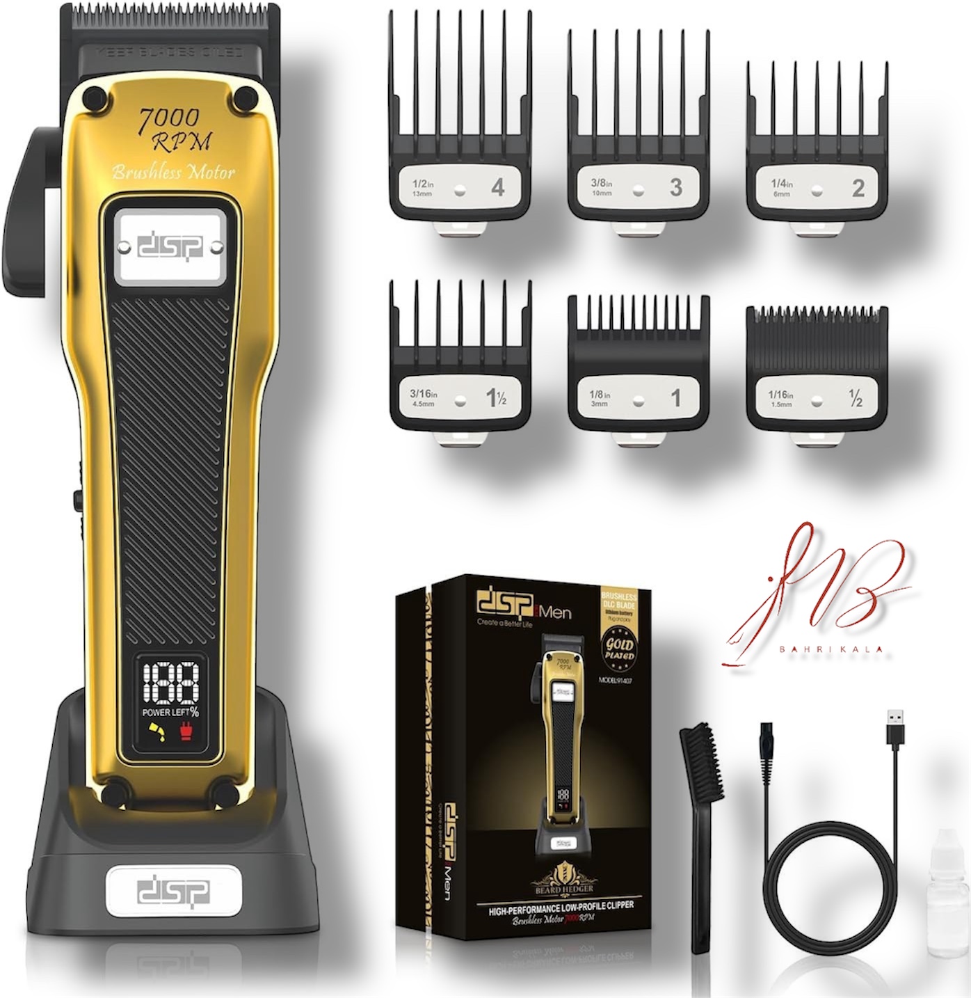 🔴اقلام همراه 6 عدد شانه اصلاح , برس , روغن , کابل شارژ
