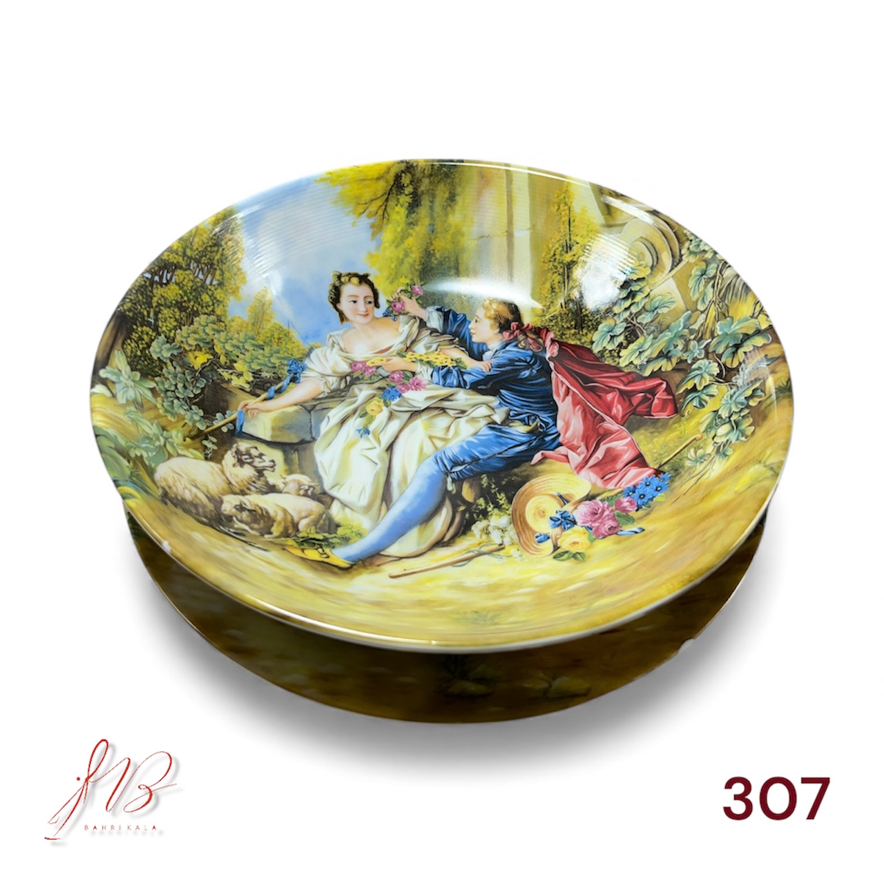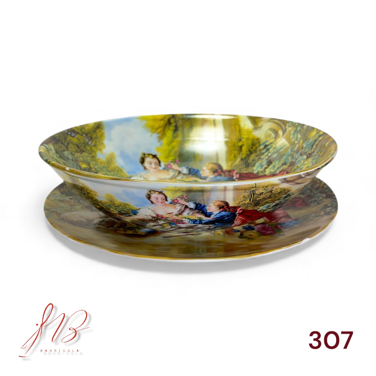 ست کاسه و بشقاب پذیرایی آتاسای طرح آلفا لیلی مجنون کد ۳۰۷. کاسه قطر ۳۱ و بشقاب قطر ۳۳ سانتیمتر. بهترین انتخاب برای میوه خوری یا آجیل خوری مجلسی.